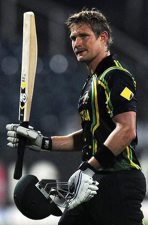Australia team: X Doherty, M Starc, P Cummins, S Watson, Brad Hogg, Glenn Maxwell, *G Bailey, Michael Hussey, D Warner, C White, M Wade